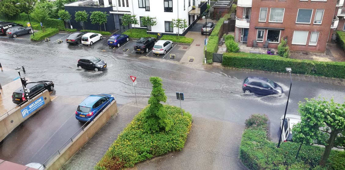 Ondanks de wateroverlast in de Croonstadtlaan, hadden we na de stortregen van 20 juni jl geen grote problemen in onze garages en bergingen. Water loopt waar het niet gaan kan, maar gelukkig is alles goed gegaan.