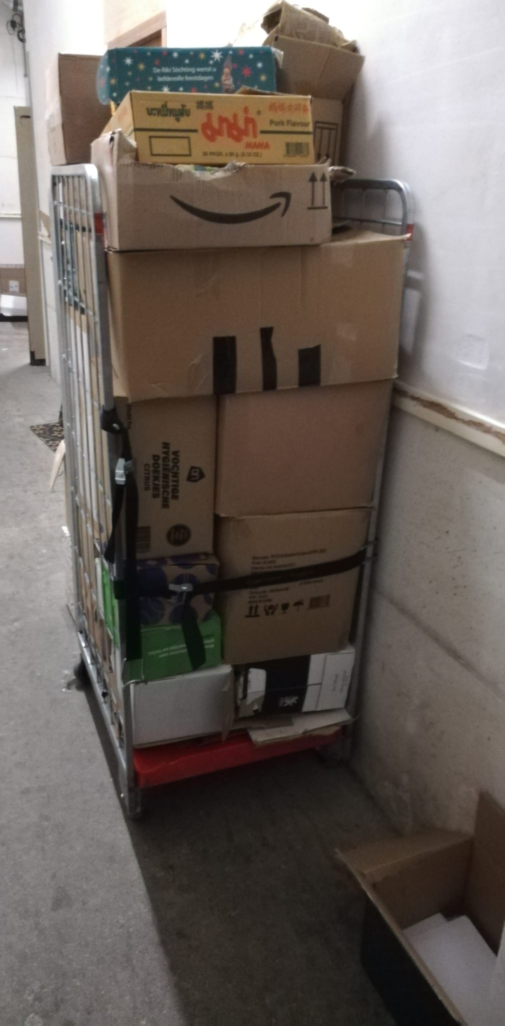 Hulde aan alle bewoners die hier aan mee doen. We hebben het idee dat er nog meer verzameld kan worden, maar onze containerruimte is er groot genoeg voor gelukkig. Vlak bij de ingang staan een aantal dozen die kunnen worden gebruikt voor los papier. Gevulde dozen en karton worden achterin de ruimte verzameld om te worden opgehaald.