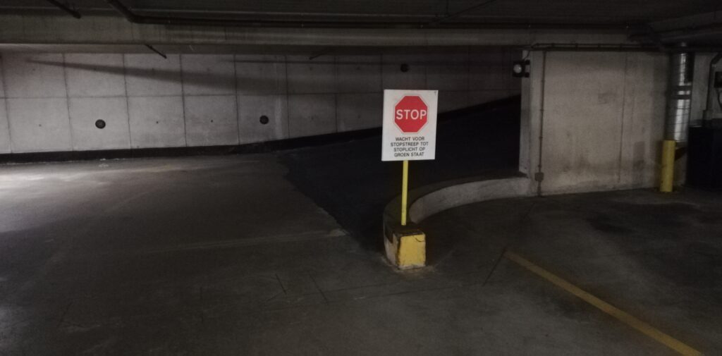 Tip 6: Als je toch staat te wachten tot de roldeur achter je sluit bij het uitrijden van de parkeergarage -2, kijk dan even naar rechts. Wanneer de slagboom van -1 dicht blijft, kun je er van uitgaan dat er geen verkeer van rechts uit -1 komt. Maar pas op voor de voetgangers die plotseling voor je motorkap staan als ze de garage verlaten via de inrit.