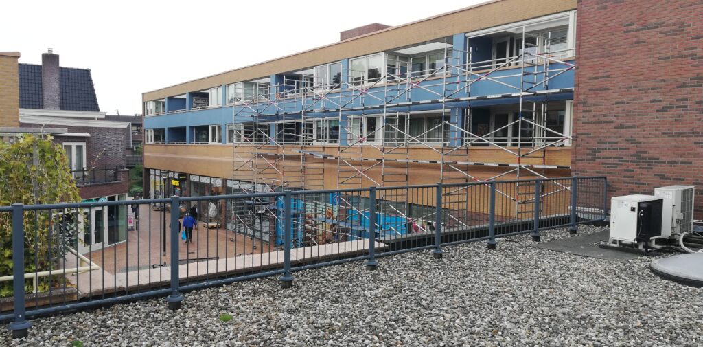 update 19 september: Schilderwerk aan ‘de toren’ is afgerond. De steiger is weer gedemonteerd om te worden opgebouwd aan de westzijde. update 14 september: Volgens plan is de steiger op donderdag 14 september verplaatst naar de noordzijde, waar de kozijnen van huisnummers 78, 80, 82 en 83 geschilderd moeten worden. De kleine raampjes in de […]